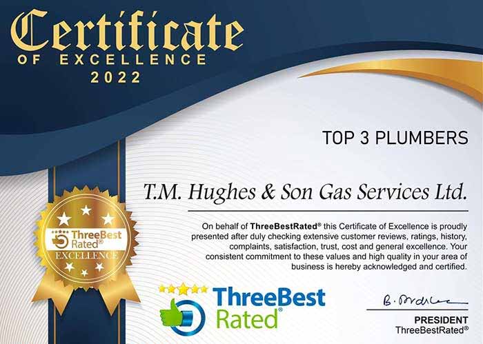 TM Hughes & Son is a multi-award-winning company, recognised as Best Business 2025 and Top 3 Plumbers by Three Best Rated, winners of the London and South East England Prestige Award 2025/2026, and highly rated on Google Reviews, Checkatrade, and TrustATrader.
